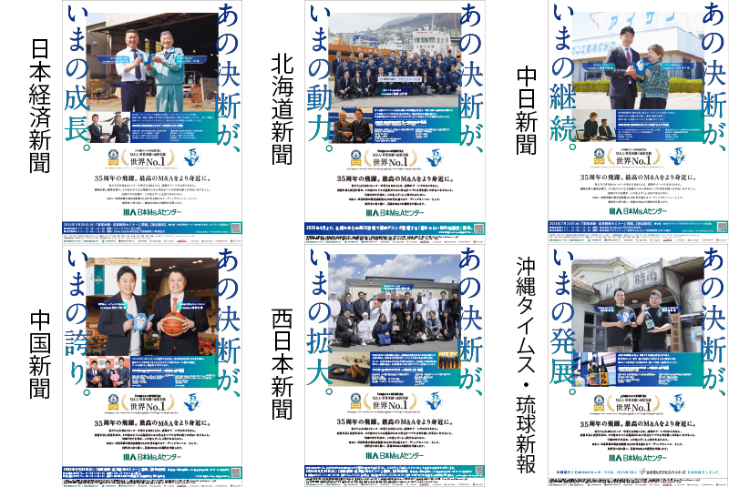 35周年の取り組みとして、2026年4月24日付で全国7紙の朝刊に全面広告を掲載しました。広告では、過去に日本M&AセンターがM&Aを支援した企業の事例を紹介しています。M&Aが企業のその後の成長や挑戦につながっている姿を通じて、これまでの取り組みへの感謝と、次のステージに向けた姿勢を表現しました。あわせて、35周年記念の特別ムービーも制作・公開しています。