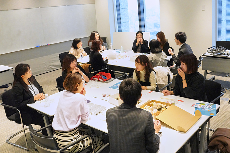 ランチ会では、日本DX人材センター社員も含めオフラインで交流。日頃業務で心がけていることや自分の設定しているアイコンやハンドルネームの話について共有し合ったり、普段のチャットでは質問にくいことを社員に直接聞いてみたりと、オフラインならではの交流を通じて親睦を深めました。