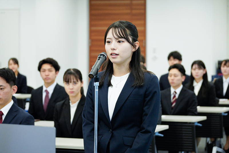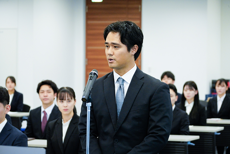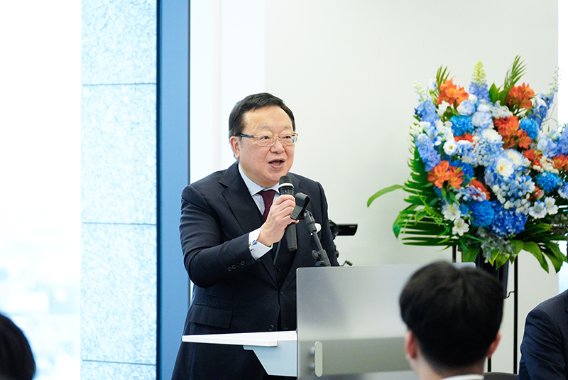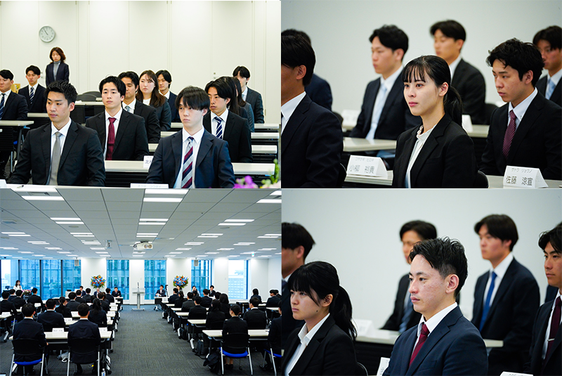 「2022年、当社は不祥事という大きな反省すべき出来事を経験しました。しかしその教訓から、コンプライアンスを徹底的に強化し、第二創業に向けた準備を着実に進めてきました。今年度入社された皆さんは、まさに会社が大きな再スタートを切る絶好のタイミングで入社されました。5年間は本気で頑張ってください。この5年間の努力が、圧倒的な成長の差となって表れます。そして、これから多くの経験を積み、皆さん一人ひとりの成長が、会社、そして日本の未来につながっていくことを期待しています。」