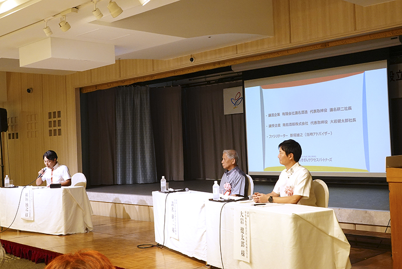 M&A経験談では、2025年2月にM&Aが成立した泡盛製造の識名酒造(譲渡企業) 代表取締役の識名 研二社長と、南島酒販(譲受け企業)の大岩 健太郎社長が登壇。おきぎんサクセスパートナーズ 新垣 雄之取締役によるファシリテーションのもと、事業承継に至った背景やM&A交渉のプロセス、今後の展望について語りました。