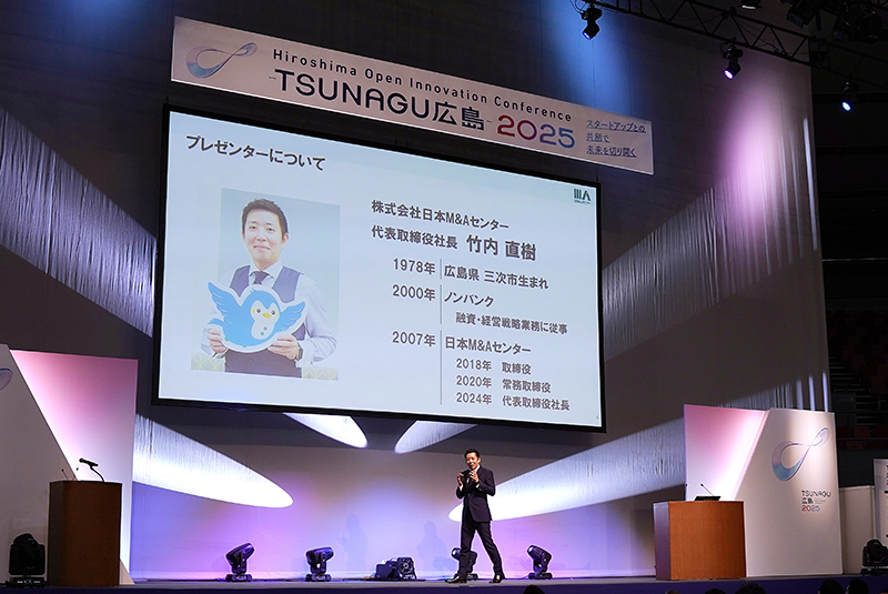 2025年11月5・6両日、広島県内企業とスタートアップ企業をマッチングするイベント「-TSUNAGU広島-2025」が広島グリーンアリーナで開催されました。地元出身の日本M&Aセンター 竹内 直樹社長がステージに登壇したほか、日本M&Aセンターとバトンズの共同でブースを出展しM&Aの活用を呼びかけました。