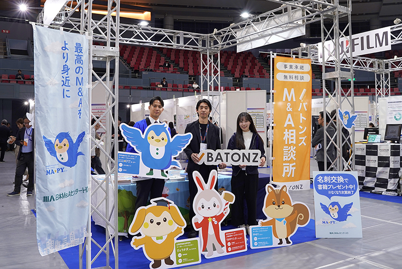 日本M&Aセンターとバトンズの共同ブースには延べ400名超の来場者の皆様にお立ち寄りいただきました。IT・スタートアップに特化した業界再編チャネルの取り組みや広島市にある中四国支社の紹介のほか、M&A・事業承継支援プラットフォーム「BATONZ(バトンズ)」の使い方を直接レクチャーさせていただくなど、有意義な情報交換の場となりました。